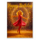 HAPPY BIRTHDAY WORDS WITH YOUNG DANCING GIRL IN A PINK DRESS