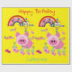 Happy Birthday Wrapping Paper Pink Pigs Yellow Geschenkpapier