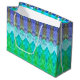 Gemusterte große Papiergeschenktüte in aquamariner, lila und kalk-grün, "Geburtstagswunsch" kann auf jede Nachricht zum Anzug einer besonderen Feier geändert werden, oder Text ist abnehmbar.