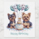 Niedliche Darstellung von Yorkie Hunden brüten Gesichter alle Kleidung in Geburtstagskleider. Perfekt für Hundefreunde oder Haustiere zum Geburtstag!