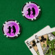 Diese Poker-Chips haben zwei glückliche schwarze Bären, die zusammen mit den Streichern goldglänzender Sterne auf einer Mischung aus hellen und dunkelrosa tanzen. Passen Sie Ihren Text mit den Vorlagen an.