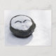 Eine frische Schneeschicht bedeckte eine runde, fröhliche Buddha-Kopfskulptur. Als der Schnee schmolz, sah es so aus, als bekomme die Skulptur eine Schneefälle. Die hübschen Details der Statue zeigen durch ihre Schneemaske eine amüsante Winterlandschaft. Digitales, Farbfoto. Copyright © 2012 Claire E. Skinner. Alle Rechte vorbehalten.