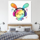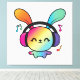 Happy Bunny mit Kopfhörern, die Musik hören. Leinwanddruck