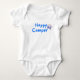 Niedlich Funny Happy Camper Baby Bodysuit Dieser niedliche und lustige Bodysuit ist mit einer modernen Typografie "Happy Camper" in blau und mit einer niedlichen Camping-Automobil-Illustration versehen. Ideal für Säuglinge, Neugeborene oder Babydusche.