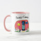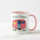 Combo Zweifarbige Kaffeemaschine (hier in Rosa und Weiß dargestellt) mit Vintag bemalten Campinganhängern, Blume und einem fröhlichen Sonnenschein.