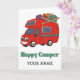 Ein wirklich glücklicher roter Camper-Wagen wird mit lustiger Ausrüstung beladen. Personalisieren Sie viele oder unsere Geschenkgegenstände mit dem Namen Ihres kleinen Campers für ein wirklich besonderes Geschenk.