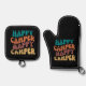 Happy Camper Retro Wavy Text Black Hintergrund Ofenhandschuh & Topflappen-Set