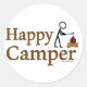 Der Sprichwort-Happy-Camper mit einem Strichmännchen, das Marshmallows über einem Lagerfeuer braten.