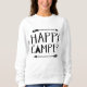 Maßgeschneiderte bedruckte Bekleidung mit trendiger rustikaler "Happy Camper" Anführungsgrafik. Klicken Sie auf Anpassen, um das Design mit Ihrem eigenen Text und Bildern zu personalisieren. Wählen Sie aus einer Vielzahl von Shirt-Stilen und -Farben.