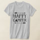 Maßgeschneiderte bedruckte Bekleidung mit trendiger rustikaler "Happy Camper" Anführungsgrafik. Klicken Sie auf Anpassen, um das Design mit Ihrem eigenen Text und Bildern zu personalisieren. Wählen Sie aus einer Vielzahl von Shirt-Stilen und -Farben.