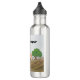 Happy Camper with a picture of a RV Parked near the trees on a water bottle.. Hiking with friends, everyone knows what water bottle is yours, great conversation piece.