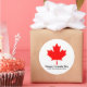 Happy Canada Day Custom Text mit rotem Ahornblatt minimalistisch schlicht elegante patriotische Geschenk Gunst Aufkleber Etiketten. Mit vollständig anpassbarem schwarzen Text, sodass Sie den Gruß ändern, personalisieren und ihn einzigartig machen können. Karo der Erholung der Kollektion für zusätzliche koordinierende und passende Party-Vorräte, Geschenke und Gefälligkeiten, Dekorationen, Accessoires, etc.