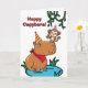 Happy Capybara! Niedliche und lustige Geburtstagskarte mit einer Abbildung einer Capybara und eines Affen. Der Affe hält einen Kuchen und ist an der Nase der Capybara stehend. Niedliche capybara pun Nachricht, die innen geschrieben wurde. Art, Bild und Vers Copyright © Shoaff Ballanger Studios, 2025.