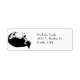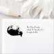 Glückliche schwarz-weiße Katze rollt leicht über Ihre Adressetiketten. Ändern Sie einfach die gewünschte Adresse!