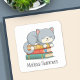 Happy Cat Book Stack Custom Name Bookplate Quadratischer Aufkleber