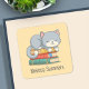Happy Cat Book Stack Custom Name Bookplate Yellow Quadratischer Aufkleber