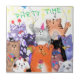 Happy Cat Party Cartoon Zeichnend - Niedlich Funny Fliese