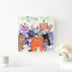 Happy Cat Party Cartoon Zeichnend - Niedlich Funny Quadratische Wanduhr
