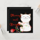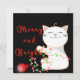 Glückliche Katze mit LED-Licht spielen - eine niedliche Weihnachtsflachkarte für Sie. Guten Tag, mein Freund!