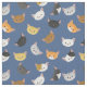 Dieser lustige Stoff zeichnet sich durch ein Muster aus verschiedenen lachenden Katzengesichtern auf einem blauen Hintergrund aus.