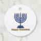 Happy Chanukah Gold Text mit einem blauen Menorah.