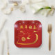Chinesische Feuerwerke mit goldenem Papier-Schnitt einer niedlichen Schlange in eine große goldene 2025 (Original Handschrift) + goldene "Schlange" (Original Handschrift an), grüßen "Happy New Year" in Chinesisch und Englisch. Design auf der Papierplatte aus Party. Passende Papierserviette. Ideal für ein lustiges chinesisches Neujahr der Schlange 2025.