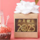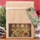 Goldener Schnitt einer Schlange in einen goldenen Kreis als 0 von 2025 + Goldene chinesische Wünsche + Happy New Year (in Englisch) + Holzhintergrund (Bild gedruckt). Design auf einem horizontalen rechteckigen Aufkleber. Matching Grußkarte und Urlaubspostkarte. Perfekt für das chinesische Neujahr der Schlange 2025.