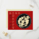 Custom 2020 + Happy + Year of the Rat + Golden rat und Trauben Papier-Schnitt (Modell n°4) in einen schwarzen Kreis mit dunkelrotem Hintergrund (vorne) und golden chinesischen Muster als Hintergrund (hinten). Sie können den Text (Schriftart, Größe und Position) leicht ändern, wenn Sie gewollt haben, indem Sie auf die Schaltfläche Anpassen klicken. Design an horizontalen Feiertagen Postkarte. Erhältlich mit anderen Papierschnitten von Ratten.