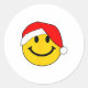Happy Christmas Happy Face With Santa Hat Runder Aufkleber