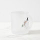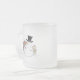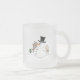 Illustration eines Weihnachtsschneemans im Stil eines Cartoon in einer Schneeszene mit schneebedeckten Häusern und einem Baum im Hintergrund.
