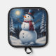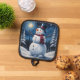 Colorful image of happy snowman in winter wonderland pot holder.