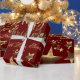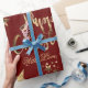 Happy Christmas Stars Red Gold Elegantes Skript Geschenkpapier