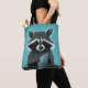 Das ist mein Ölgemälde von einem glücklichen Waschbär, der seinen wertvollen Fisch hält. Tolle Tasche beim Shopping!