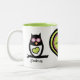 Personalisieren Sie die Namen und das Datum auf diesem niedlichen Herz und passende Eulen Design für eine Geschenkidee Tasse für ein großes Paar. Schönes Brautparty oder Jubiläumsgeschenk. Editieren Sie den Text einfach im Zazzle Editor.