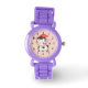 Eine Armbanduhr mit einem hübschen Bild einer gepunkteten, schwarzweißen Kuh mit einem roten Hut.