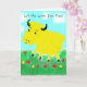 Glücklich lächelnde gelbe Kuh, die über eine grüne Wiese inmitten von gelben und roten Blume spielt. Ein türkisblauer Himmel und weiße flauschige Wolken vervollständigen das Bild. Die Nachricht lautet "Lass den Kühen frei laufen" und innen steht "Genieße deinen besonderen veganen Tag". Personalisieren Sie diese Karte einfach, indem Sie den Vorlagentext bearbeiten. Danke, dass Sie sich meine veganen Designs angesehen haben!