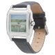 Uhr, Klassische Damenuhr mit schwarzen Lederarmband
