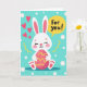 This design shows a stylized white bunny with long ears facing forward on an aqua background, cheeks tinted rosy as its eyes rest closed in a soft, content expression 🐰. Its small paws hold a large decorated egg with fuchsia and yellow patterns, like a sweet gift being offered to someone special. The gentle tilt of its head and the careful way it hugs the egg suggest affection, like a quiet moment between close friends. To the upper right, a yellow speech bubble carries the words “For you!” in a darker contrasting tone, placed so it feels like the bunny is speaking directly to the viewer 🌷. Along the left side, several pink hearts float upward, adding a romantic touch without crowding the main figure. Curvy yellow squiggles curl around the scene, bringing a light sense of motion as if the air is buzzing with excitement. Small white circles are sprinkled across the turquoise backdrop like confetti or bubbles, with the brightest cluster near the bunny’s shoulders and around the speech bubble.