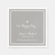 Die Worte Oh Happy Day in einem Skript-Schriftart-Stil mit einem kleinen Herz der Liebe, mit Ihren eigenen Namen und besonderen Datum, auf einem grauen Hintergrund ... diese maßgeschneiderten Hochzeitsnapkins bringen einen personalisierten Flair zu Ihrer großen Veranstaltung