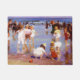 Dieses Design zeigt ein Gemälde des amerikanischen Impressionisten Edward Henry Potthast (1857-1927). Es zeigt große Menschenmassen Kinder, die sich an einem warmen Sommertag am Strand amüsieren. Einige der Kinder laufen in flachem Wasser, während andere weiter zum Meer schwimmen. Im Vordergrund scheinen einige junge Mädchen eine Sandburg zu bauen; am Strand neben ihnen befindet sich ein roter Eimer voller Sand. Es ist ein schönes Bild der Kindheit in der jüngeren Geschichte. Das Originalwerk wurde 1920 von E.H. Potthast gemalt.