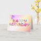 Vielfalt an süßen Dessertmotiven im fröhlichen Geburtstagsgeschenk-Schriftart mit Party-Ballon auf bunten pastellfarbenen Hintergrund