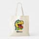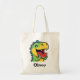 This adorable personalized kids' tote bag features a joyful green dinosaur taking a big bite out of a juicy watermelon slice, capturing the perfect spirit of a sunny afternoon.