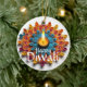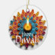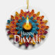 Happy Diwali Keramik Ornament mit Diya und Rangoli Diwali (Deepavali oder Divali) ist das Hindu Festival der Lichter mit seinen Variationen auch in anderen indischen Religionen gefeiert. Es symbolisiert den spirituellen "Sieg des Lichts über die Dunkelheit, des Guten über das Böse und des Wissens über die Ignoranz". Diwali wird während der hinduistisch-lunisolaren Monate Ashvin (gemäß der Amanta-Tradition) und Kartika gefeiert - zwischen Mitte September und Mitte November.