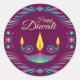 Happy Diwali lila Kerze flache Abbildung Runder Aufkleber