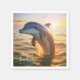Diese Papierservietten haben einen glücklichen Delphin bei Sonnenaufgang.