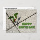Happy Earth Day und Forever Hoffnungsvoll trotz der Chancen wächst ein Ahornbaum aus zwischen Betonplatten, die einen Schatten auf den Gruß auf dieser fotografischen Postkarte werfen. Diese Umweltbewusstsein-Postkarte ist ideal für die Überquerung des Earth Day oder um Ermutigung angesichts der Herausforderungen des Lebens und des Kampfes gegen die Chancen zu senden. Der Text ist sowohl auf der Vorder- als auch auf der Rückseite anpassbar. Das ist die Originalfotografie von JLW_FOTOGRAFIE.
