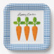 Happy Easter Blue Gingham mit Carrot Design Pappteller