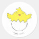 Dieser Aufkleber ist mit einem handgezeichnet, glücklichen und teilweise geschlüpften Baby-Huhn bedruckt.