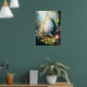 Grosses Osterposter mit einem großen Ostereier und niedlichen Tieren wie Osterhasen oder Kaninchen. Magische Fantasy Forest Blumenkunst mit Blume und bezaubernden Tieren. Ostereierjagd im Fantasy-Wald.