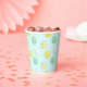 Happy Easter paper cups decorated with egg pattern on blue background